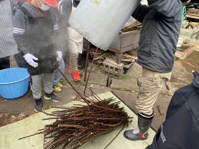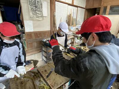 本年度も1月9日(日)に久木野まで行って楮の切り出し、1月14日(金)に楮の皮むき作業を行い、卒業証書づくりがスタートしました。6年生児童は、初めて行う作業に戸惑いながらも一生懸命取り組んでいました。