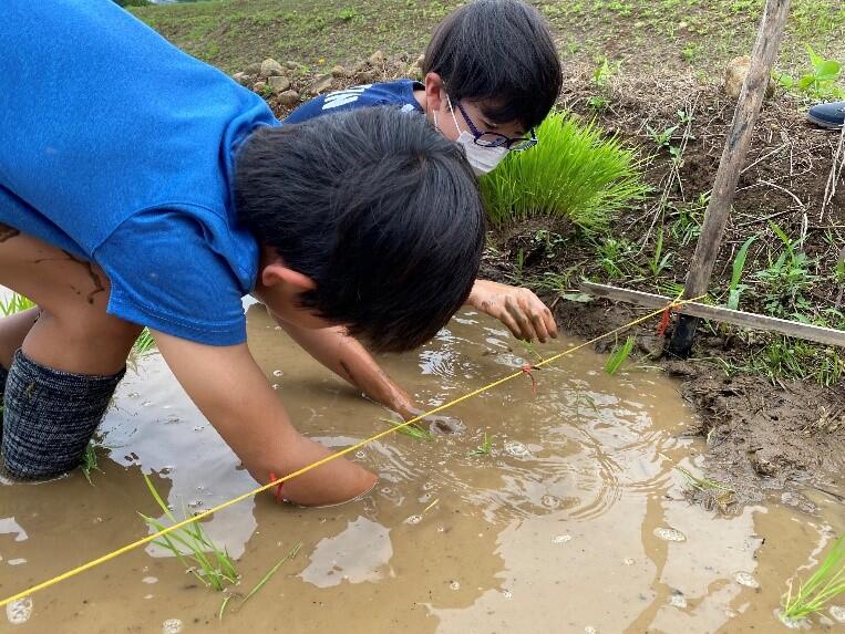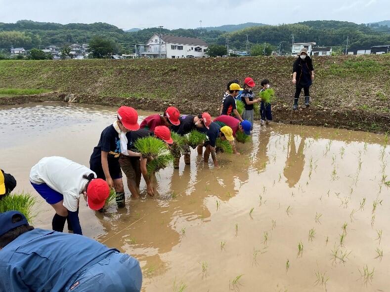 6月14日(水)に、田植え体験を行いました。昨年度に引き続き、森さんにご協力いただき、体験を行うことができました。子供たちは、「泥で足が抜けません!」「はじめよりも上手に植えられるようになりました!」など、感想も思い思いだったようです。これからの田んぼの様子を子供たちと観察しながら、学習を進めていきます。田植えをさせてくださった森さん、そしてお手伝いいただいた保護者の皆様、本当にありがとうございました。