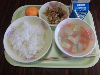 メニュー:びりんめし、白玉だご汁、ポンカン、牛乳