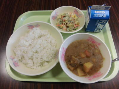 今日は、「外国語の授業で考えたカレー(水一小6年)」です。その名のとおり、水俣第一小学校6年生が考えたカレーです。冬が旬のほうれん草が入っています。ほうれん草には、カロテン(ビタミンA)がたっぷり入っていてかぜの予防に効果的です。明日は、袋小のリクエストメニューです。
