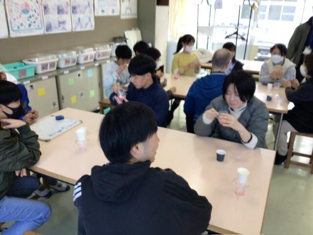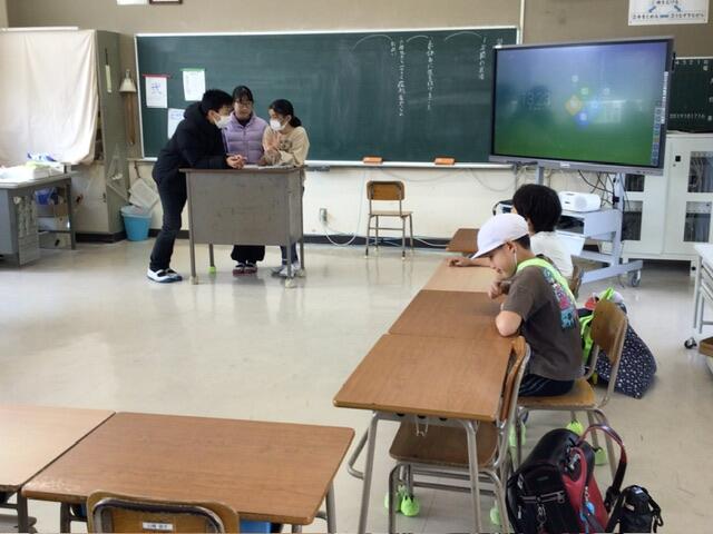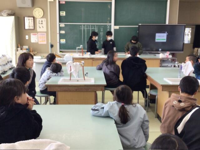 理科室を除くと、何やら実験が行われていました。4年生が物のあたたまり方の実験をしていました。今日は水のあたたまり方を実験したそうです。「金属と水ではあたたまり方が違うよ。」と説明してくれました。