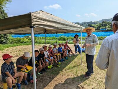 5年生が芋の苗植えを体験しました。毎年、地区協議会の主催で「芋ほり大会」が実施されますが、その苗の準備です。昨年の9月の芋ほり大会はとても楽しかっですね。その背景には、地区協議会の皆様の大変なお世話の上に成り立っているということを、お話を聞きながら改めて感じました。