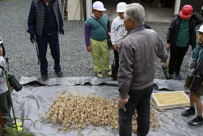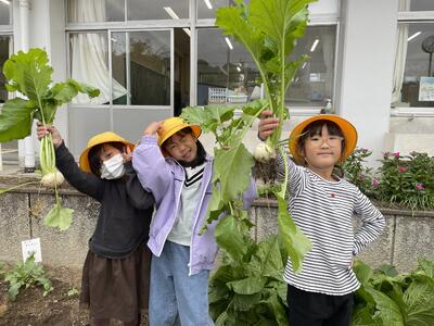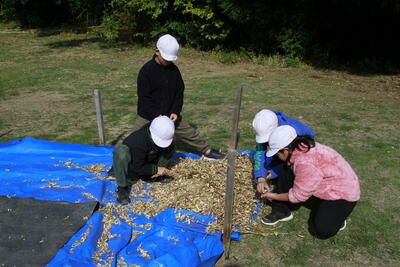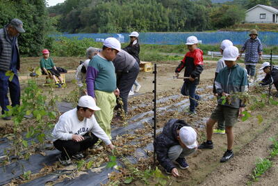 3年生が見事に実った大豆の収穫をしました。3年生は国語の学習で「すがたをかえる大豆」という学習をしていて、学習内容を振り返りながら収穫したのではないでしょうか。最後に、このような体験ができるのは、支援してくださった地域の皆様のお蔭であることを言葉にしてお礼を言いました。農産物に限らず、食に関わる全ての方々に感謝の気持ちをもって、好き嫌いせずに何でも食べてほしいですね。