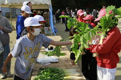 府本地区協議会主催の「歩け歩け大会」が実施されました。府本小学校は地域の皆様に支えられた学校です。この歩け歩け大会にも児童が参画させて頂き、様々な社会体験活動をさせて頂きました。「野菜づくり」「お茶づくり」「小代焼づくり」「大豆づくり」…、子ども達は育てたもの、作ったものを販売し、普段できない体験に大喜びでした。当日はPTAの食バザーも開催され、大いに賑わいました。