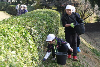 来年の茶摘みに向けて、5年生が茶畑に施肥を行いました。朝から地域のボランティアの皆様が剪定作業をしてくださり、感謝の気持ちをもって施肥していました。きっとおいしい茶葉がつくことでしょう。