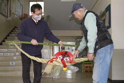 地域のボランティアの方から、しめ縄(正月飾り)をいただきました。児童玄関に飾りたいと思います。