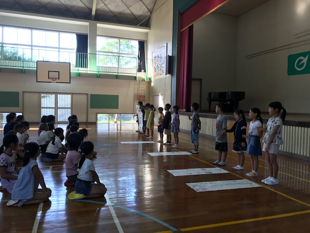 9/17の児童集会は2年生の早口言葉に回文、言葉を巧みに使い、児童集会(2年生発表).png