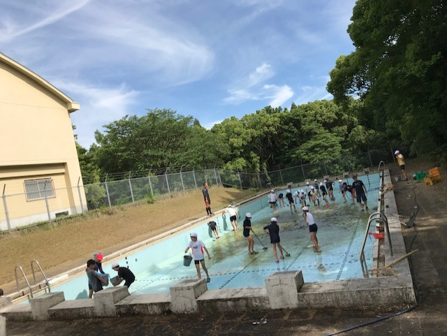 6・7(金)は気温・水温約25度と肌寒い中、プール開きでした。