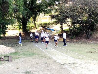 10月24日 1・2年生が一緒にドッジボールをしていました!