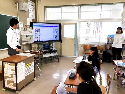 熊日情報サポート学習では、取材の仕方やまとめる際のポイントなどを丁寧に教えていただきました。今日は、新聞の「題字」をオリジナルで作っていただけることになり、子どもたちはさらに意欲アップしていました。