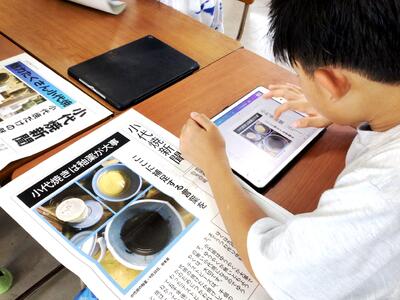 4年生は、熊本日日新聞社の方のご支援をいただいて、小代焼きについての新聞づくりをしています。