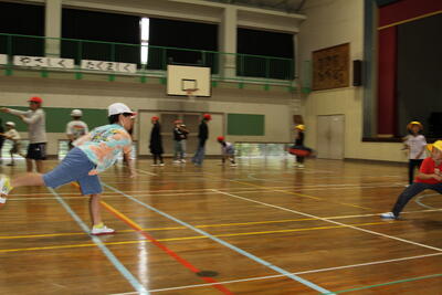 体育の時間に、1・2年生が一緒にドッジボールをしていました。楽しく仲良くできているようで、笑顔と元気な声が聞こえていました。