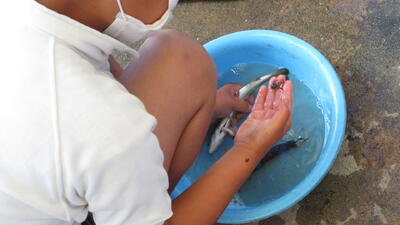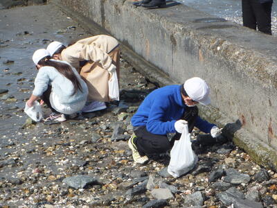 湿地センターで干潟について学習した後、干潟に出て貝殻を拾いました。