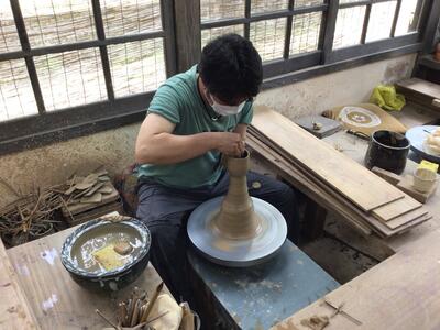 4年生が府本窯の井上さんに小代焼のお話を聞きに行きました。