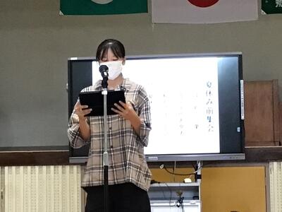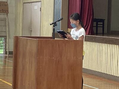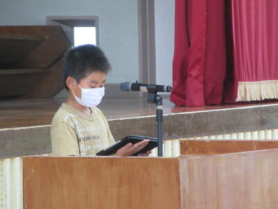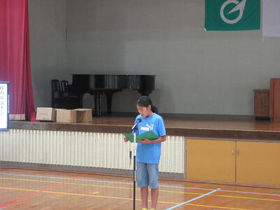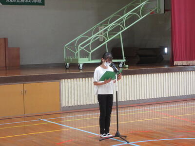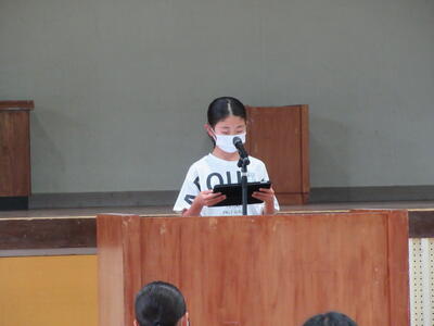 各学年の代表の児童が前期前半の振り返りを発表しました。