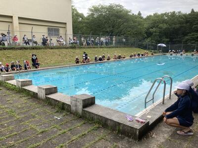 低学年・中学年・高学年に分かれてプール開きがありました。