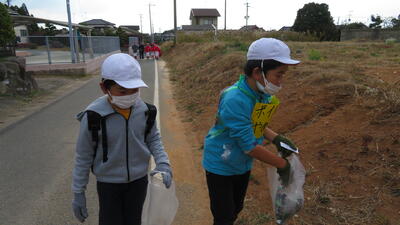 本校の児童全員が参画し、地域の方々と歩いたり、ゴミ拾い活動をしたりしました。