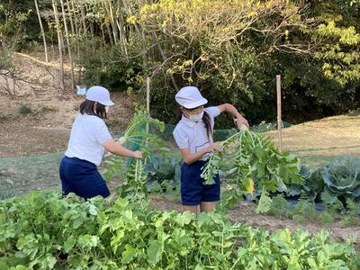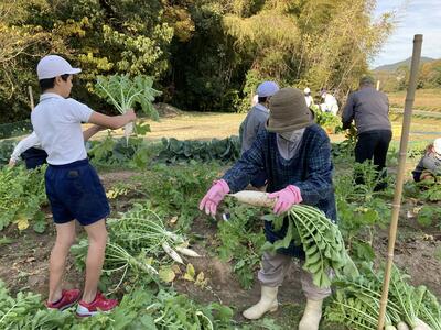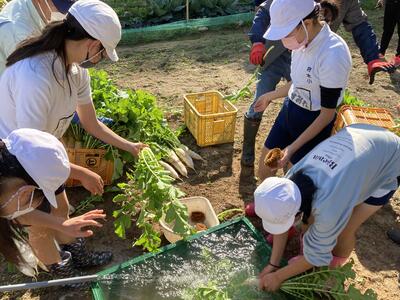 12月は大根を収穫しました。収穫した後は自分たちの手で泥をきれいに落とし、洗い、農家さんの手間を学ぶことができました。
