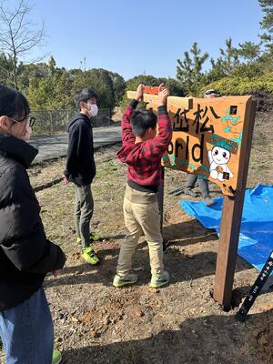 2月に11本の小岱松を4、5年生が植樹をした場所に6年生が名前を付け、看板を作りました。