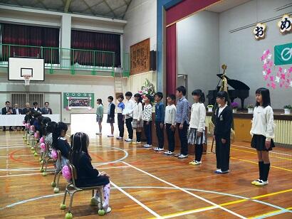 9日(火)に令和6年度入学式を開催し、9名のかわいらしい1年生をお迎えしました。今年は来賓もお迎えしての入学式を行うことができ、学校関係者だけでなく地域や行政代表のみなさまにもかわいらしい姿を見ていただくことができました。緊張気味に入場してきた子どもたちでしたが、お行儀も良くしっかりお話を聞くことができました。児童代表で参加した高学年児童も、お手本となる立派な態度でした。歓迎の言葉を発表してくれた6年生は短い練習時間であるにもかかわらず、素晴らしい発表で式を盛り上げてくれました。これからふもとっ子として一緒にがんばっていきましょう!