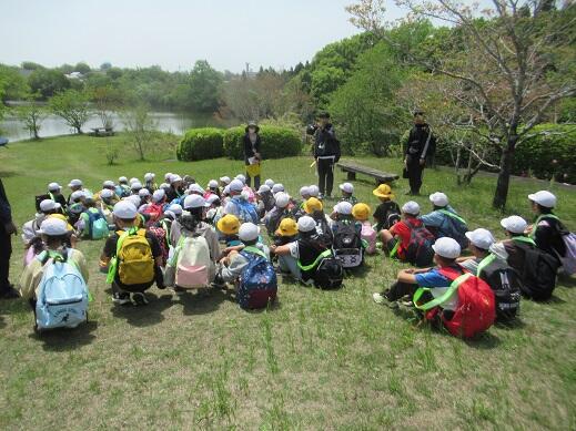 レクレーションの後、みんなで赤田公園まで遠足に行きました。天候に恵まれ、楽しく歩くことができました。公園に着くと、諸注意の後お待ちかねの弁当の時間でした。おいしいお弁当をいただいた後、全員でケードロをして、公園いっぱいを走り回りました。さすがに帰りは疲れた様子も見られましたが、楽しい一日になりました。
