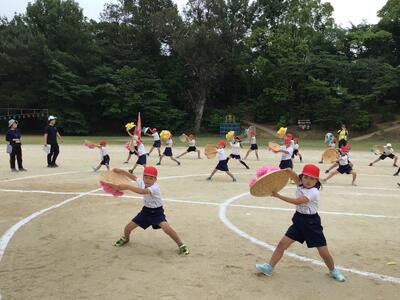 伝統の花笠音頭は、上学年になるほど動きがキビキビとしていてカッコよかったです。入退場の仕方や踊る場所の確認ができました。