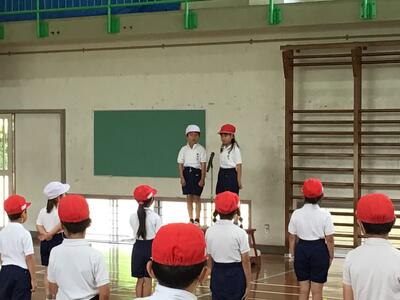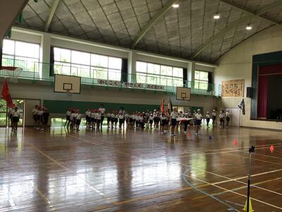 昨日は運動会の振替休業日でお休みでした。なんとか持ちこたえていた天気も、昨日は土砂降り。水はけの良い府本小運動場でも、今朝は足を踏み入れることができず、初めて体育館で全体練習を行いました。
