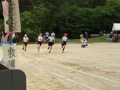 4・5年生の徒走。種目名のように「風より速く」駆け抜けました。