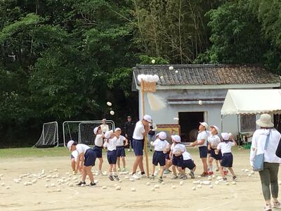 1・2・3年生の紅白玉入れ。赤白1勝ずつで両方優勝でした。