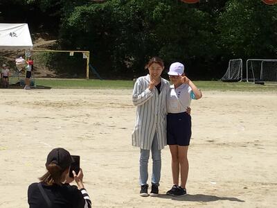 4・5・6年生が話し合い新たに作り出した今年の新企画、学年代表児童と先生方の対抗リレー。雨天プログラムでは削除予定でしたが、子どもたちの熱意と地域の方々のご理解で実施できました。校長先生も激走されましたよ。