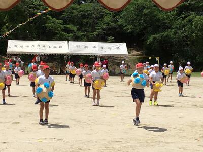 前日の豪雨で開催が心配された運動会でしたが、6時ごろにはたくさんの保護者の方々が準備をお手伝いに来てくださったり、雨天プログラムで中止予定だった競技を実施させていただいたりと、随所に府本小学校らしさがあふれる運動会でした。まさに「協力・感謝 決してあきらめない大運動会」となりました。最高の運動会の感動を味わわせていただいた保護者・地域の皆様、何より頑張り抜いてくれた子どもたちに感謝しています。ありがとうございました。