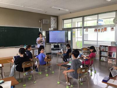 毎週金曜日はALTの先生がいらっしゃいます。外国語の時間にネイティブな英語を聞かせていただいたり、外国の文化を教えていただいたりしています。