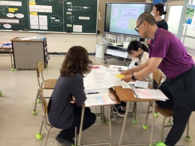 授業の後は研究会を行い、次の授業にどう生かしていくか先生たちみんなで話し合いました。よりよい授業づくりに向けてがんばる先生たちです。