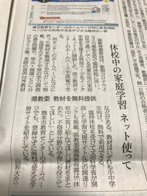 学習プリントやNHKEテレ教材(新聞報道から)