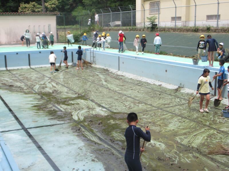 昨日の午後から全校児童でプール掃除を行いました。プールの内外にたくさんの落ち葉があり、運び出すのにも一苦労しましたが、低学年もしっかりがんばってくれました。トイレ等の掃除は4年生、そしてプールの中を上級生がきれいにしてくれました。最後には見違えるほどきれいになりました。来週から子どもたちが楽しみにしている水泳学習が始まります。自分たちできれいにしたプールに入るのは気持ちいいでしょうね!