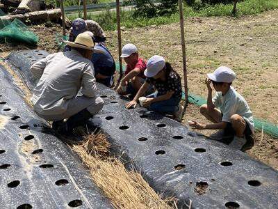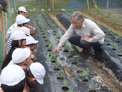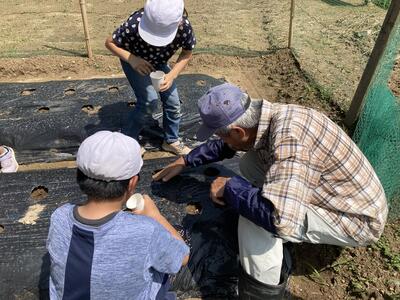 地域の山崎さんと前田さんに教えていただきながら丁寧に種まきをすることができました。