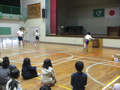 6年生の代表3名が始めにキャッチボールをしました。