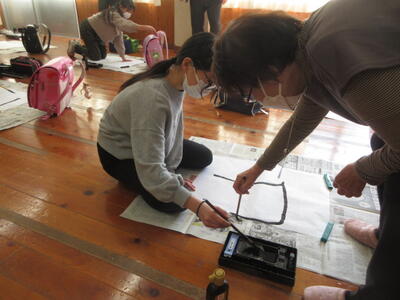 完成した作品は、卒業式に掲示します。
