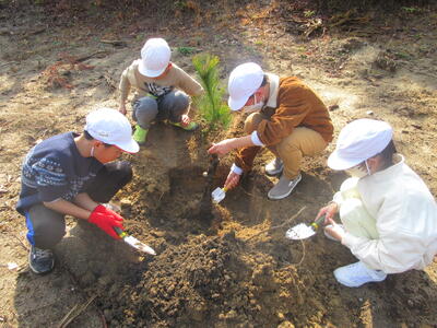 2月26日、4、5年生が小岱松の植樹をしました。