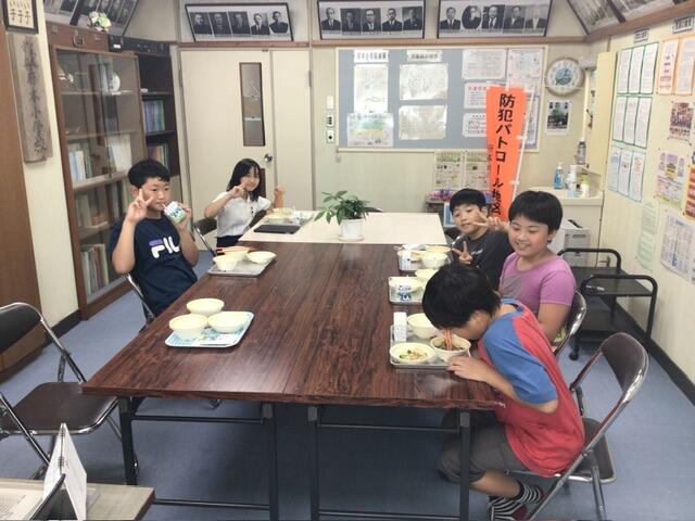 前期後半から毎週木曜日にランチミーティングを行なっています。各委員会の子どもたちと校長室で一緒に給食を食べながら、委員会からお願いしたいことや逆に委員会にしてほしいことなどをお話ししています。お願いされたことですぐに対応できることについてはできるだけ早く対応するようにしています。子どもたちの思いを学校経営に生かし、自分たちで学校生活をよりよいものにしていってほしいという願いを込めて、担任の先生方にも協力いただいています。と、大きなことを言っていますが、子どもたちと楽しく給食を食べたいというのが本音です。昨日は、環境委員会の子どもたちとご一緒させていただきました。
