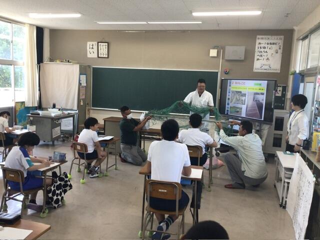昨日5年生教室に、海苔養殖業の方々がお見えになりました。社会の漁業の学習で、実際に養殖業に携わっておられる方のお話しを聞く貴重な機会となりました。プレゼンだけでなくな、実際の道具も持ってきていただき有意義な時間となりました。お忙しい中ありがとうございました!