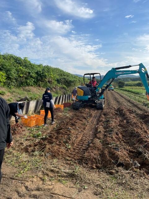 天候不良のため一週間延期されたカライモ掘り大会を明日に控え、今日は朝からその準備がありました。いつもお世話になっている府本地区協議会の大きなイベントということで、学校からもお手伝いに行きました。暑い中でしたが、半分以上のカライモを掘り、袋詰めをお手伝いしました。規模の大きさに驚くとともに、地域のみなさんの団結力に感動した次第です。お昼は、炊き出しの美味しいカレーをいただきました。残念ながら、明日は別の会に出席するため参加できませんが、盛会をお祈りしております。