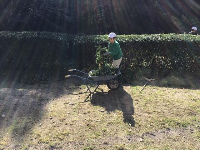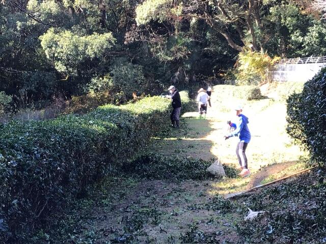 昨日5年生が茶畑のお世話をしました。山﨑会長とともに地域の方がお茶の葉を剪定してくださったので、その葉を回収して肥料撒きをがんばりました。来年の5月においしいお茶がたくさん取れることを願ってがんばってくれました。