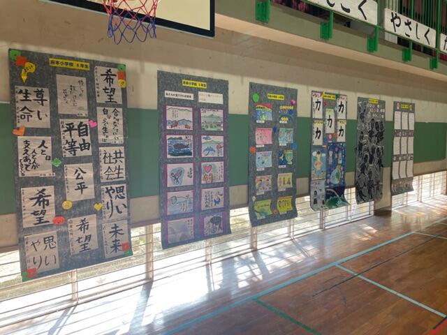 今年最後の投稿は心温まるものにしたいと思います。12月に総務委員会が取り組んでくれたありがとうの木です。友だちへのありがとうのメッセージを書いてポストに入れると、総務委員会が給食の放送で紹介して掲示するという取り組みでした。教えてくれて、遊びに誘ってくれて、声をかけてくれてなどたくさんのありがとうが掲示されています。来年もまたたくさんのありがとうが聞こえることを期待して、令和6年の投稿を終了します。いつもご覧いただきありがとうございました。来年も子どもたちが元気に登校し、たくさんこのホームページで活躍を紹介できることを願っています。みなさん良いお年をお迎えください。