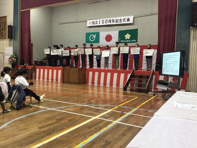 今日、無事に150周年記念式典を開催しました。たくさんの来賓のみなさまや地域のみなさま、保護者のみなさまに来ていただき、盛大に開催できたことを嬉しく思います。第二部の学習発表会では子どもたちが練習の成果を発揮してがんばってくれました。無事に開催でき、安心して年を越せそうです。