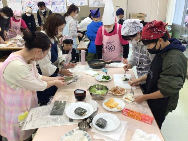 土曜日の150周年記念式典の後に6年生の学年レクレーションが行われました。荒尾市食生活改善推進員さん方に起こしいただき、親子での調理でした。楽しく「おにぎらず」を作られたようです。親子の絆もより深まったことでしょう。おうちでも挑戦してみてください。