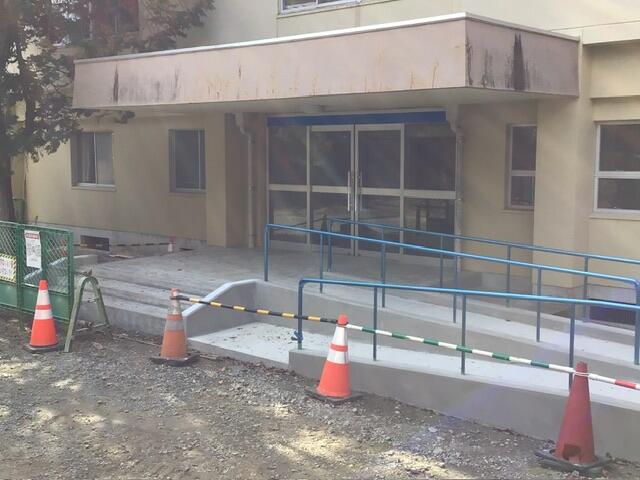 長く続いているバリアフリー工事がいよいよ完成間近です。体育館玄関はすでに完成しているように見えます。職員玄関もドアが新しくなっています。トイレの方はもう少しかかりそうです。休みの日にも工事を進めてくださった工事関係者のみなさまありがとうございます!