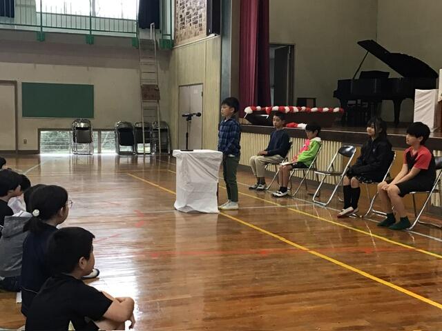 月曜日の5時間目に今年度最後の地区児童会を行いました。今回は、1年間の反省や春休みに気をつけることを話し合い、新役員決めを行いました。最後に6年生からのあいさつと在校生からのお礼の言葉で締めくくりました。1年間大きな事故もなく安全に登校できたのは6年生のおかげだと思います。6年生のみなさんありがとう!