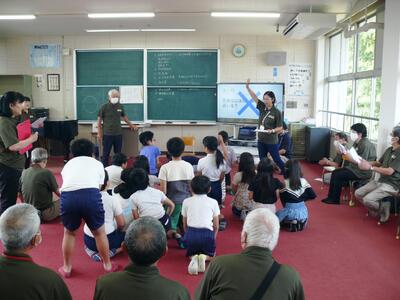 先週、中学年が民生委員さんと交流しました。地域の民生委員さんを知り、民生委員さんの仕事や地域での役割を知ることが目的で、数年かけて市内の小学校全てで実施されています。当日は、民生委員さんの紹介に続き、名刺交換をしたり、民生委員さんのお仕事をクイズい形式で教えていただいたり、子どもたちの発表をしたりと有意義な交流会になったようです。最後にはお土産のボールまでいただき大喜びの子どもたちでした。地域の民生委員さんと、顔の見える関係になれました!