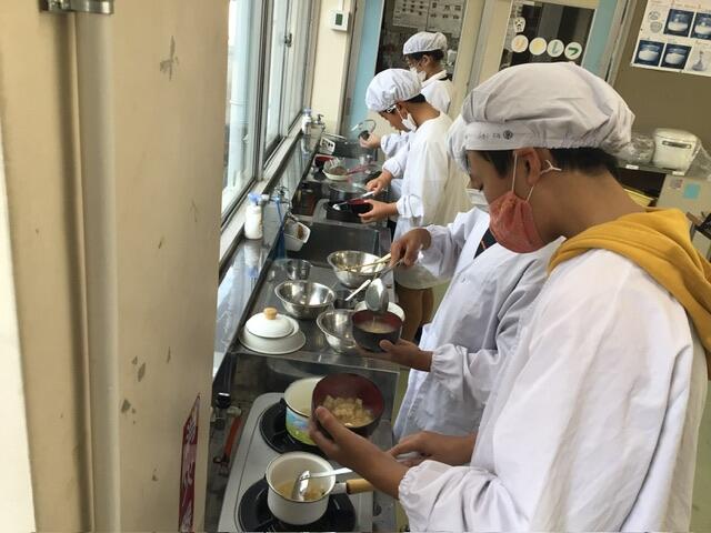 昨日、5年生が家庭科で調理実習を行なっていました。今回は、ご飯と味噌汁の学習でした。ボランティアの方にもお手伝いいただきながら、1人ずつ調理に挑戦していました。美味しそうな香りが校舎に広がっていました。おうちでもぜひ挑戦してみてください。